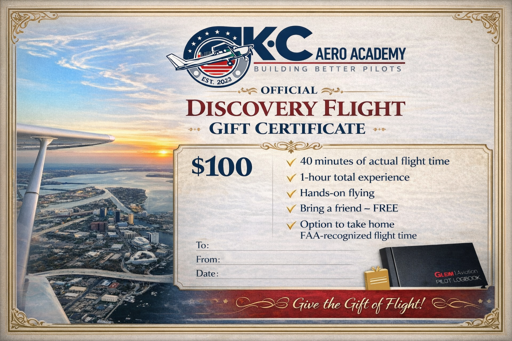 Know someone who lights up at the sound of an airplane? Give them a gift they’ll never forget—a Discovery Flight Gift Certificate at KC Aero Academy!